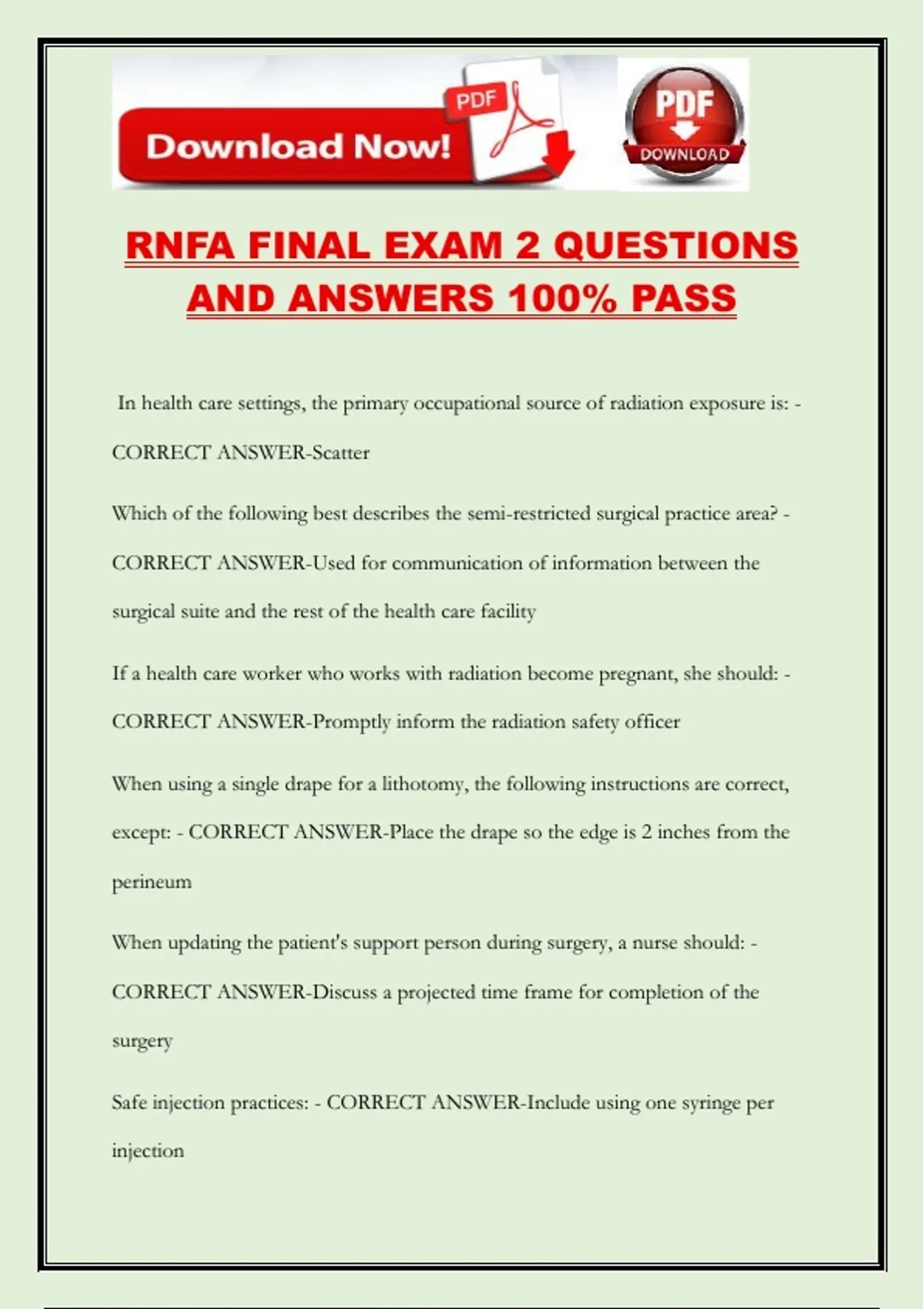 RNFA FINAL EXAM 2 QUESTIONS AND ANSWERS 100% PASS