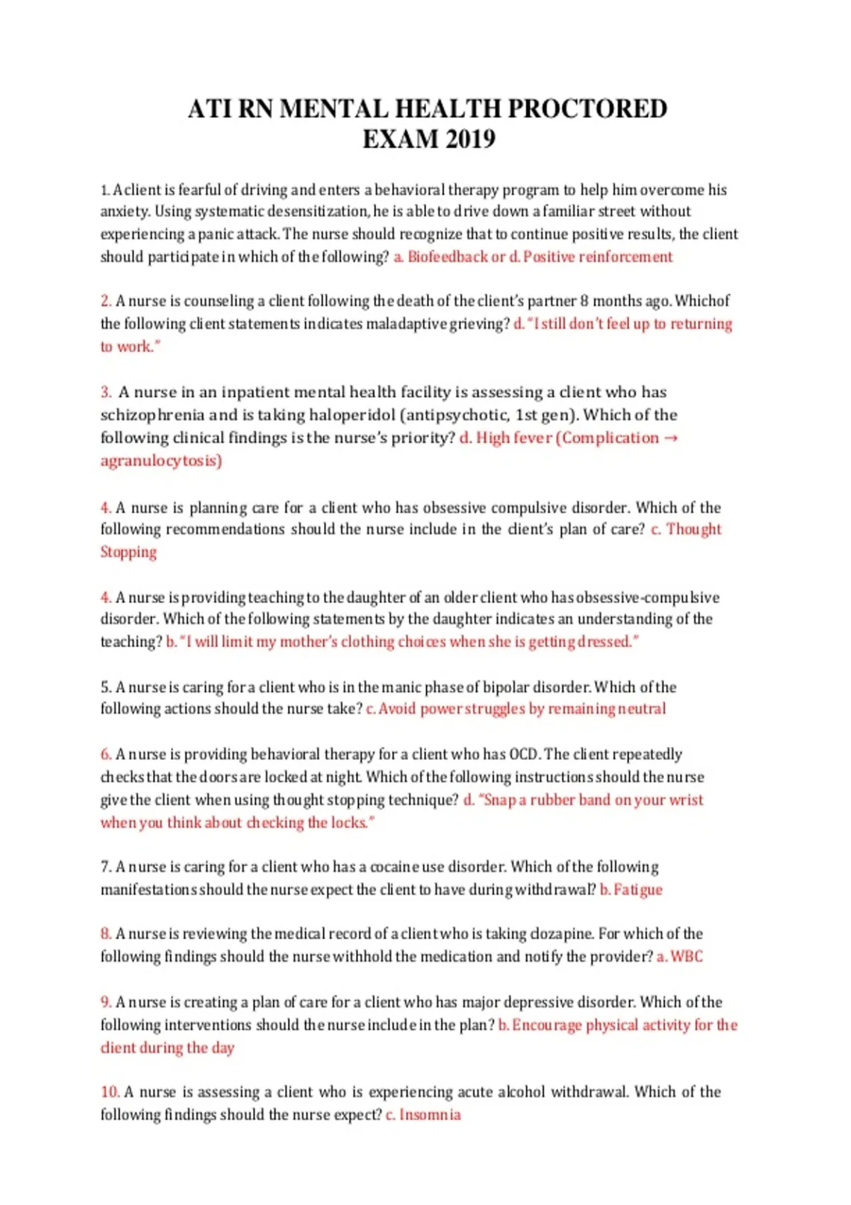 1. A client is fearful of driving and enters a behavioral therapy program to help him overcome his