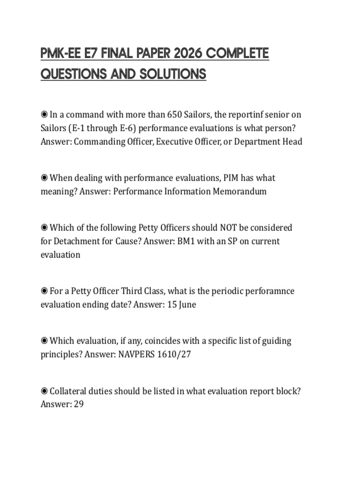 ◉ Which of the following Petty Officers should NOT be considered
