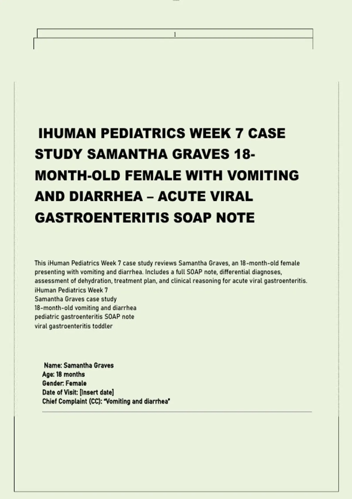 This iHuman Pediatrics Week 7 case study reviews Samantha Graves, an 18-month-old female