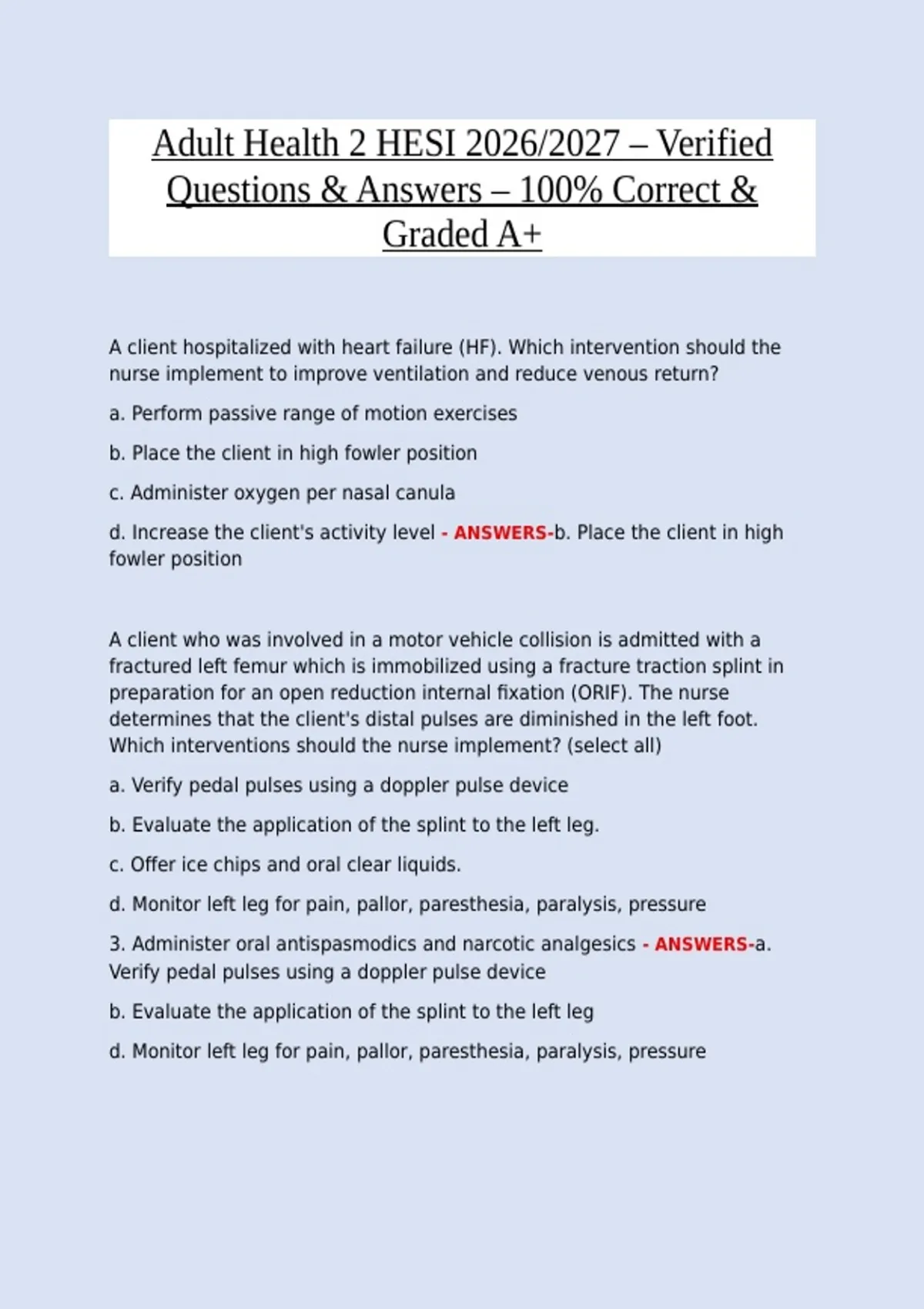 d. Increase the client's activity level - ANSWERS-b. Place the client in high