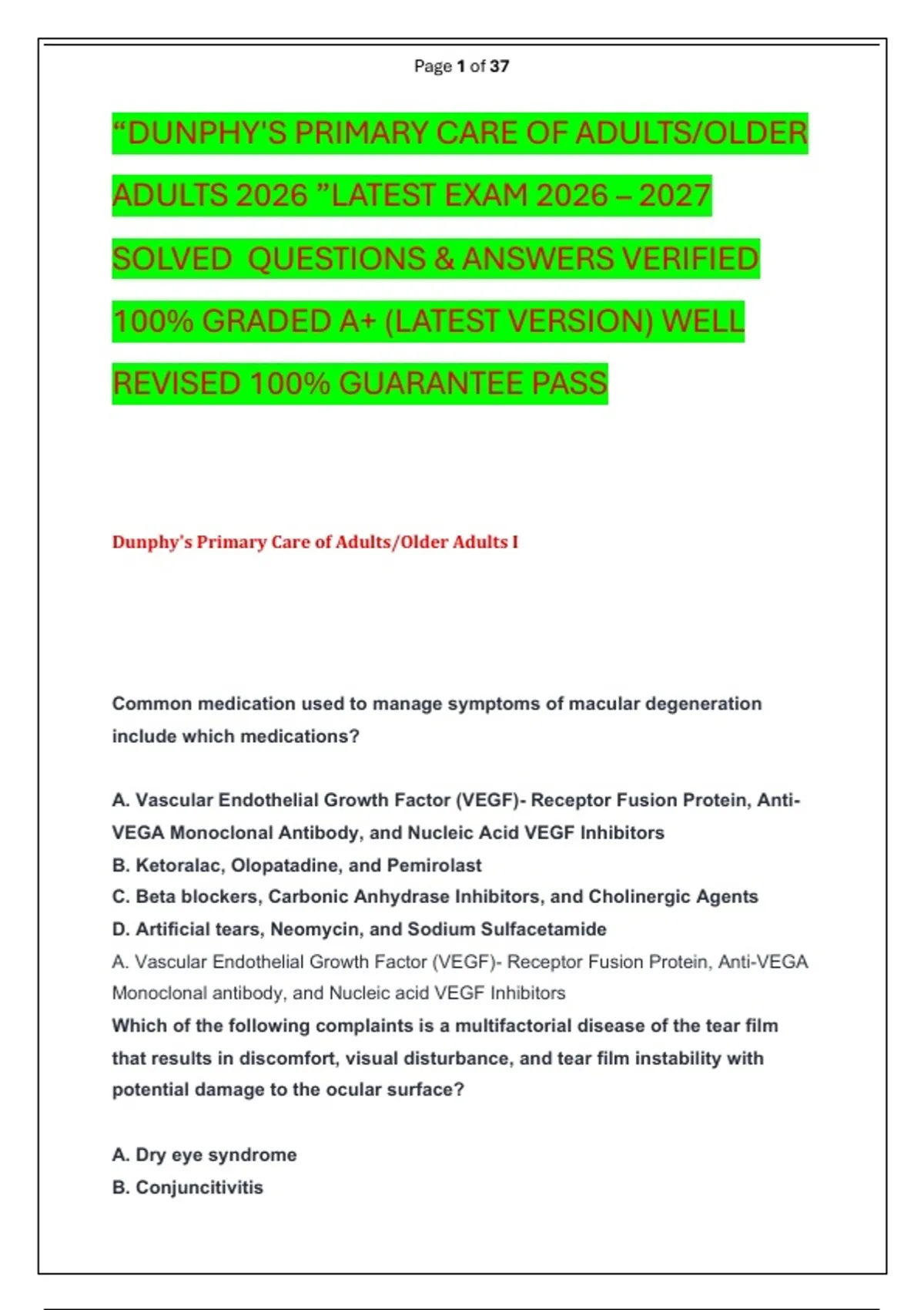 “DUNPHY'S PRIMARY CARE OF ADULTS/OLDER