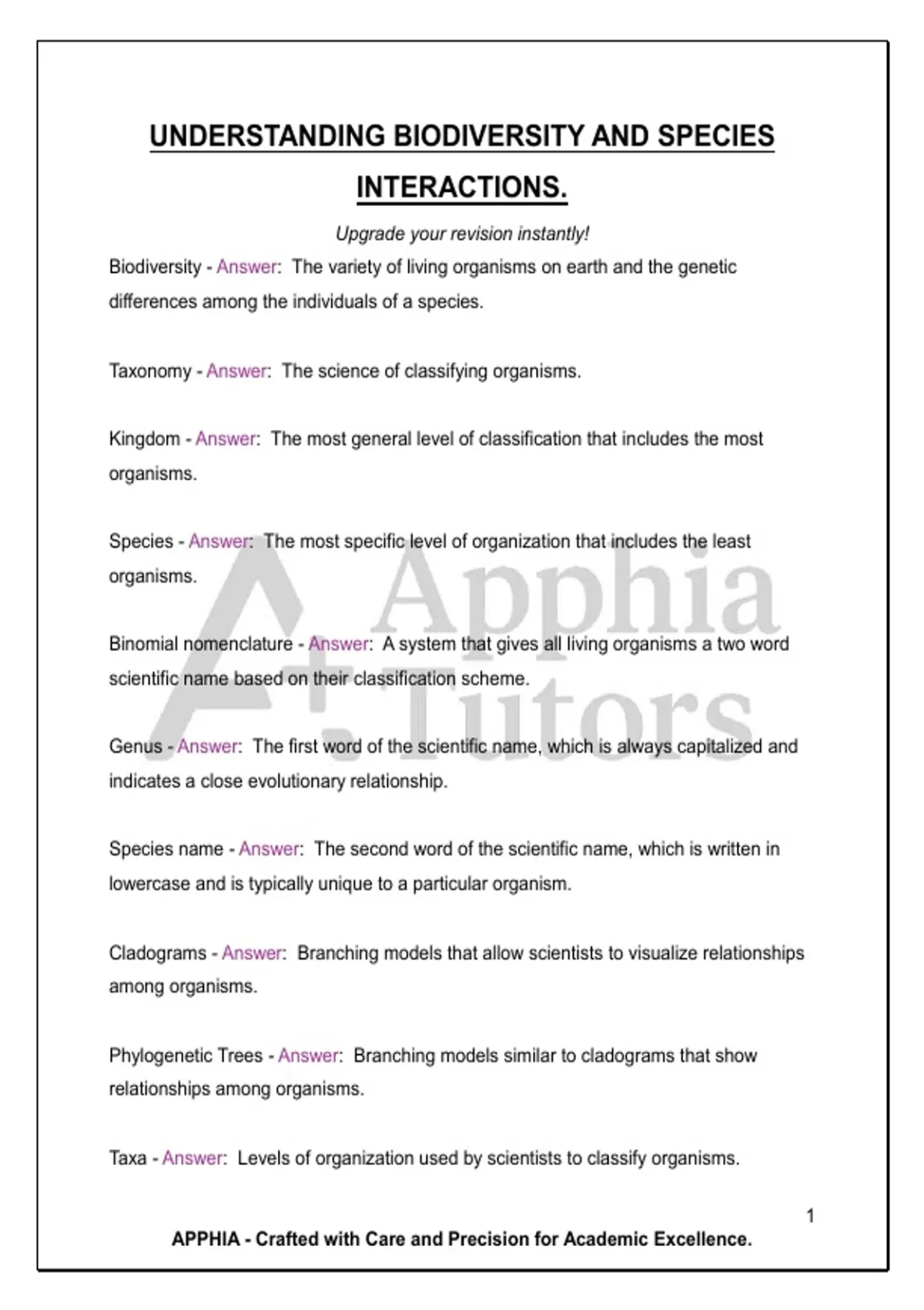 UNDERSTANDING BIODIVERSITY AND SPECIES INTERACTIONS. Upgrade your revision instantly!