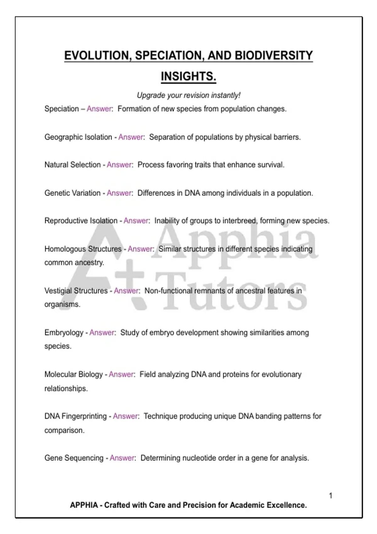 EVOLUTION, SPECIATION, AND BIODIVERSITY INSIGHTS. Upgrade your revision instantly!