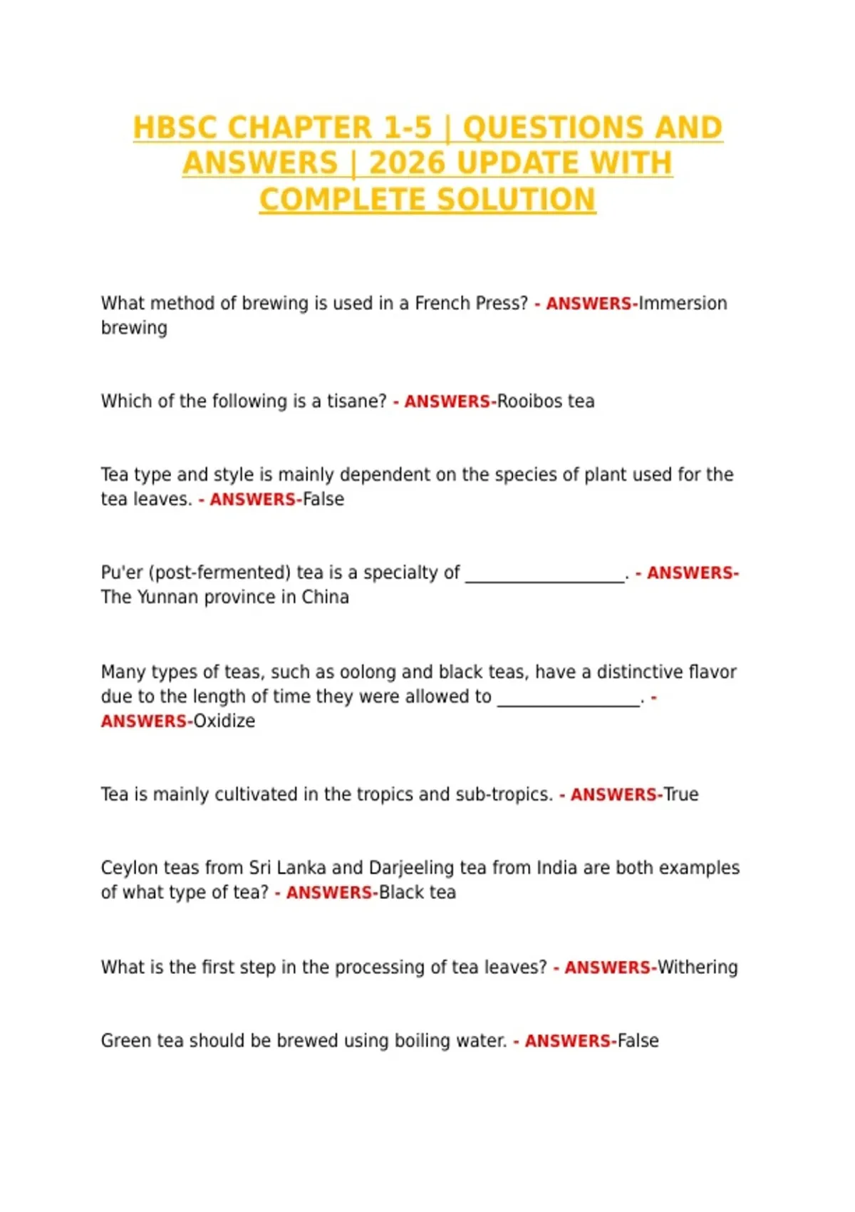 This document is a comprehensive study resource covering HBSC Chapters 1–5, updated for 2026. It contains questions with verified answers and complete solutions, designed to provide a thorough review for students studying this material. The content covers all key concepts, theories, and applications introduced in Chapters 1 through 5, offering detailed explanations to enhance understanding and retention. Each question is paired with a step-by-step solution, making it ideal for exam preparation, homework, and self-assessment.