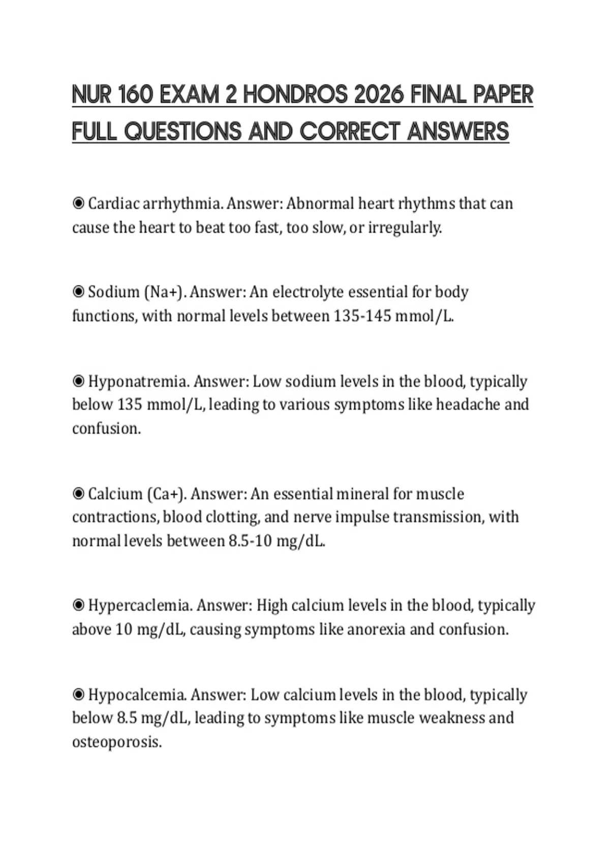 NUR 160 EXAM 2 HONDROS 2026 FINAL PAPER FULL QUESTIONS AND CORRECT ANSWERS