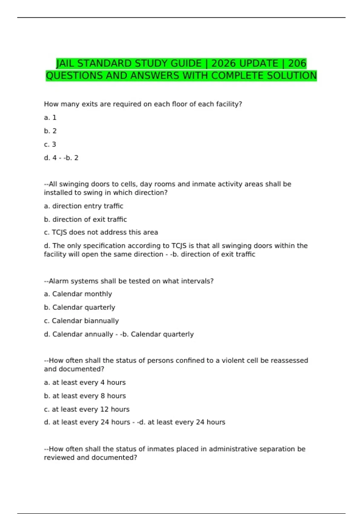 JAIL STANDARD STUDY GUIDE | 2026 UPDATE | 206 QUESTIONS AND ANSWERS WITH COMPLETE SOLUTION