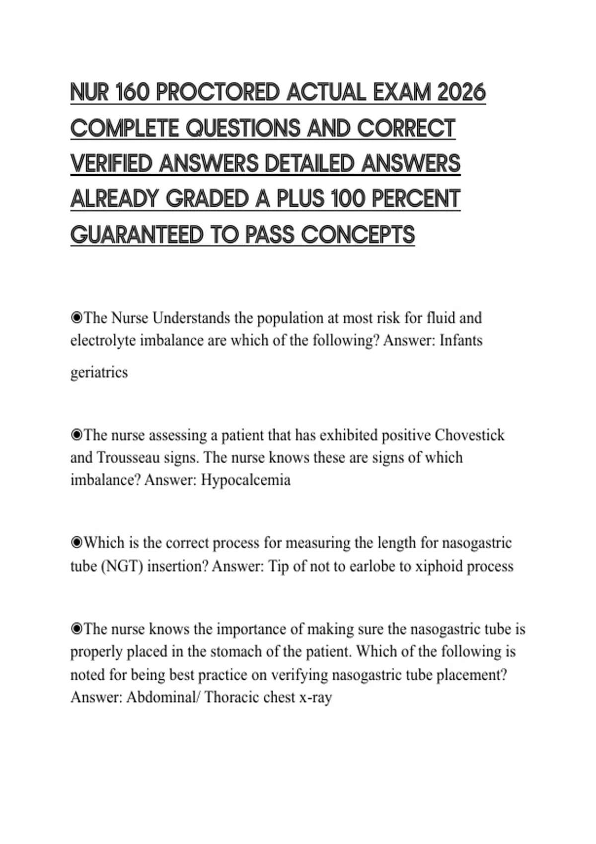 NUR 160 PROCTORED ACTUAL EXAM 2026 COMPLETE QUESTIONS AND CORRECT VERIFIED ANSWERS DETAILED ANSWERS ALREADY GRADED A PLUS 100 PERCENT GUARANTEED TO PASS CONCEPTS