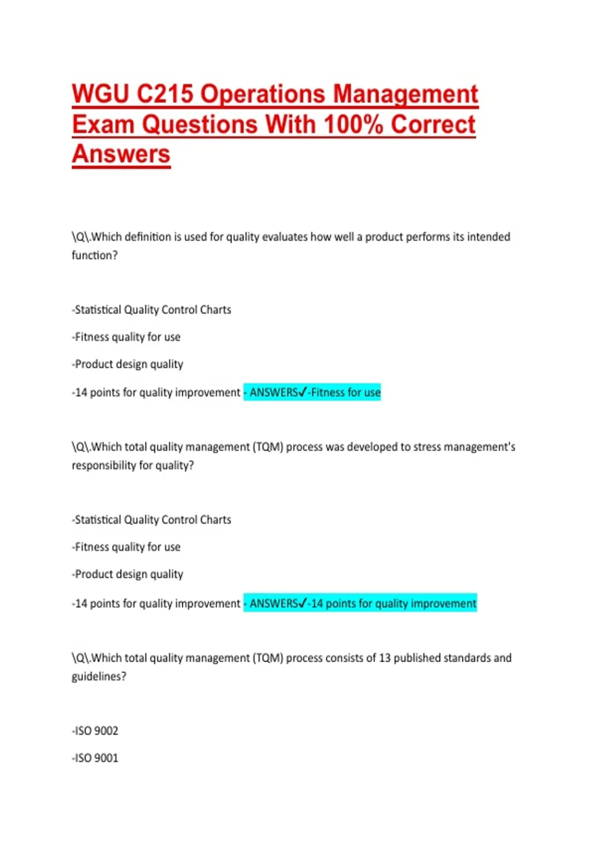 WGU C215 Operations Management Exam Questions With 100% Correct Answers| verified exam questions