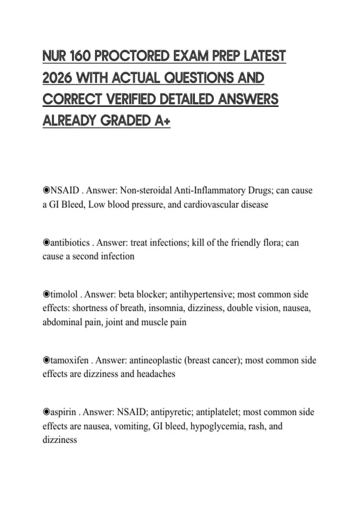 NUR 160 PROCTORED EXAM PREP LATEST