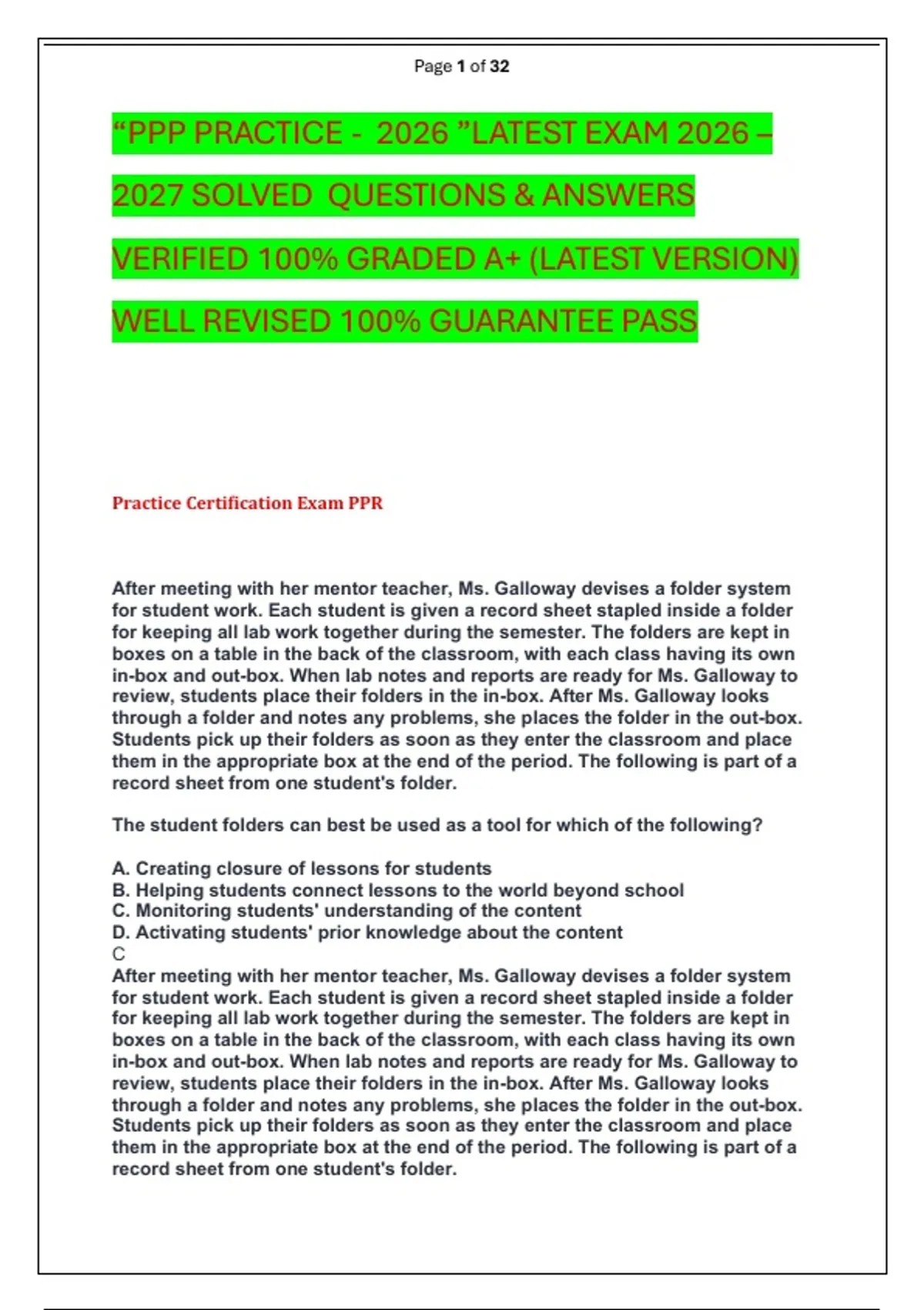 “PPP PRACTICE - 2026 ”LATEST EXAM 2026 – 2027 SOLVED QUESTIONS & ANSWERS VERIFIED 100% GRADED A+ (LATEST VERSION) WELL REVISED 100% GUARANTEE PASS