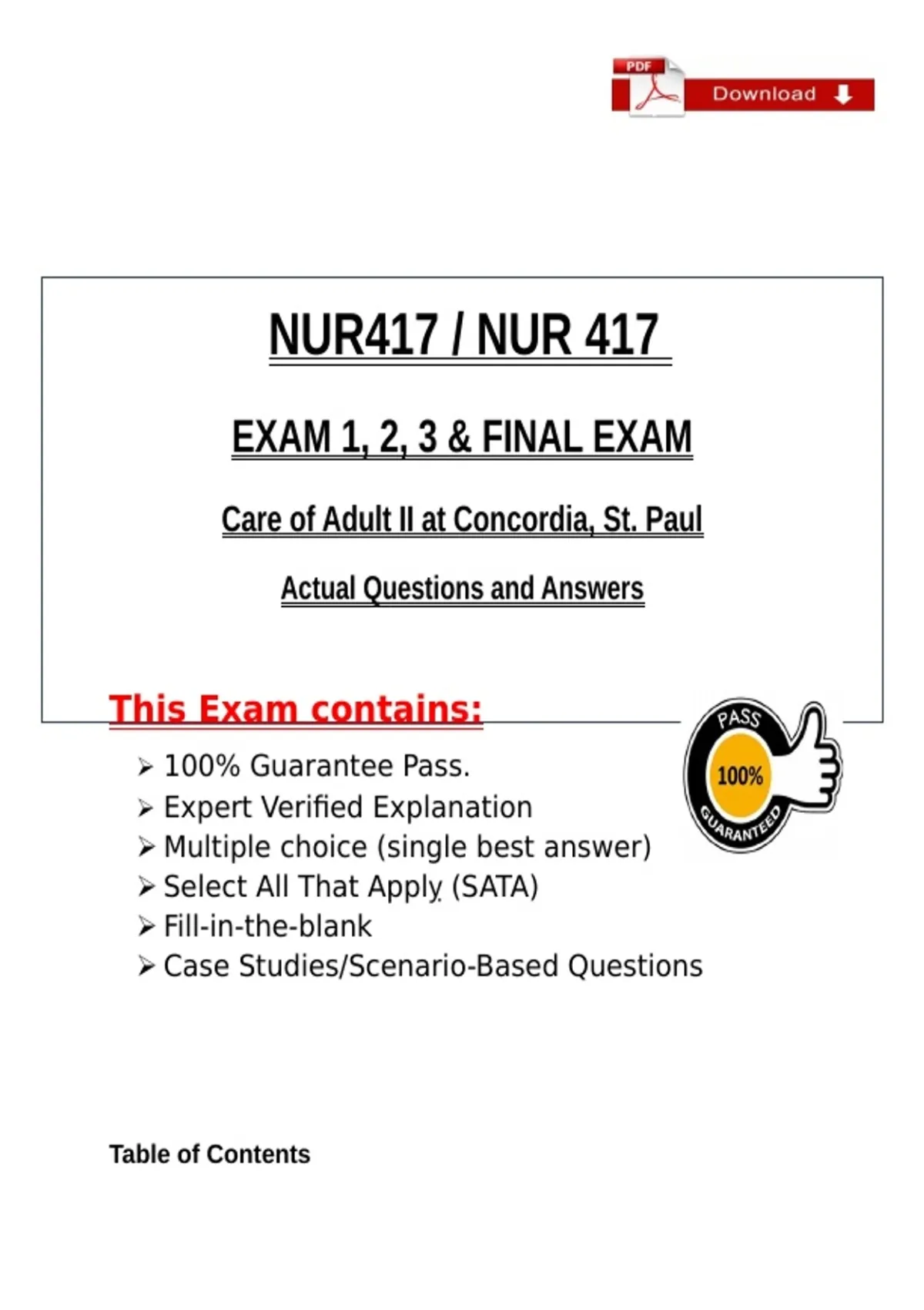 NUR 417 – Final Exam..........................................................................................................101