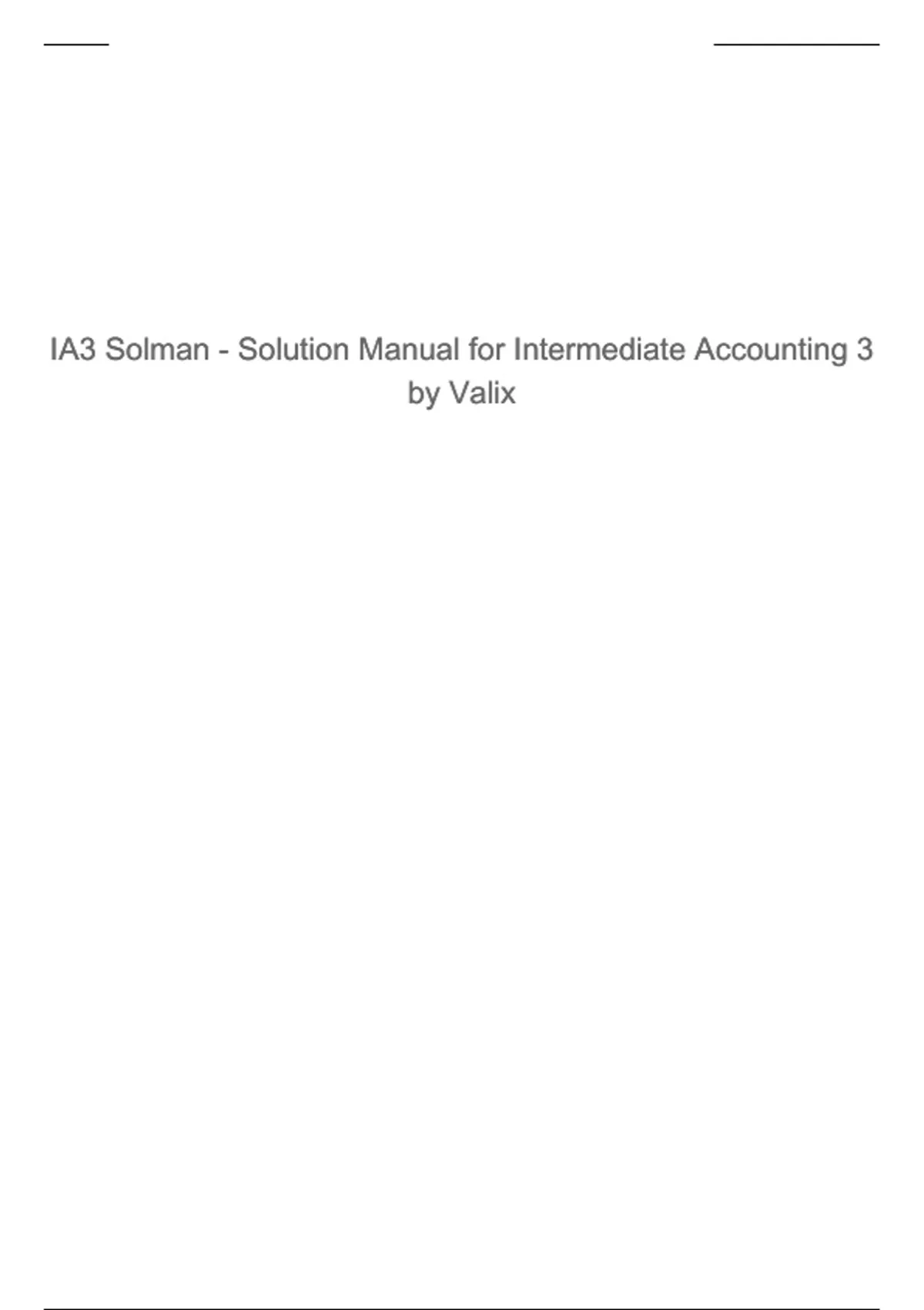 This IA3 Solution Manual for Intermediate Accounting 3 by Valix provides clear, step-by-step worked solutions to key accounting problems and exercises. Covers advanced accounting topics commonly assessed in Intermediate Accounting courses, helping students understand problem-solving techniques, calculations, and proper accounting treatment. Ideal for exam preparation, assignment review, and concept reinforcement for accounting students seeking structured and reliable study support.