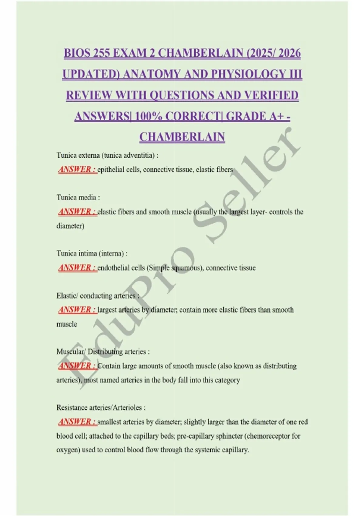 BIOS 255 EXAM 2 CHAMBERLAIN (2025/ 2026 UPDATED) ANATOMY AND PHYSIOLOGY III REVIEW WITH QUESTIONS AND VERIFIED ANSWERS| 100% CORRECT| GRADE A+ -CHAMBERLAIN