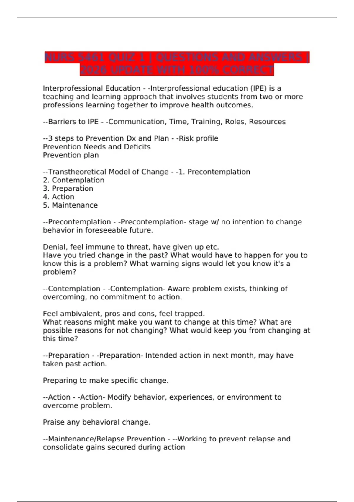 NURS 5461 QUIZ 1 | QUESTIONS AND ANSWERS |