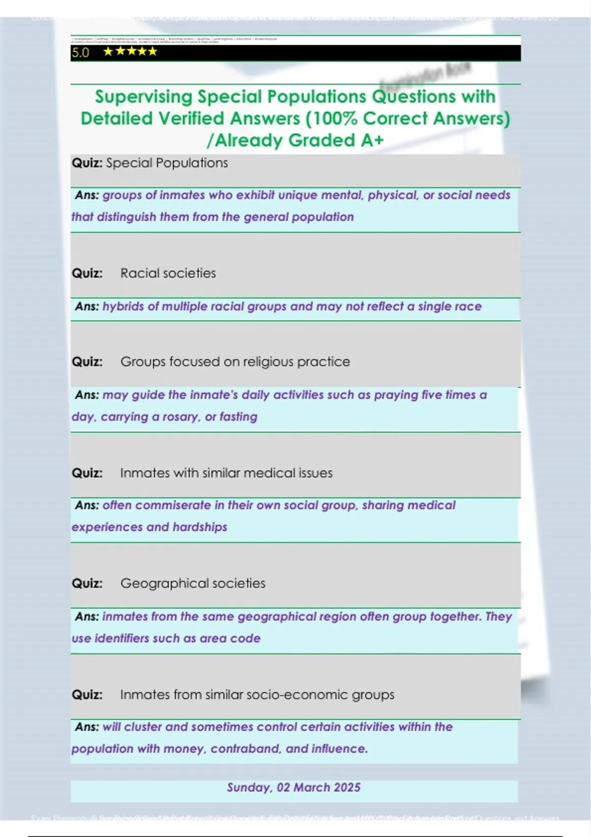 Supervising Special Populations Questions with