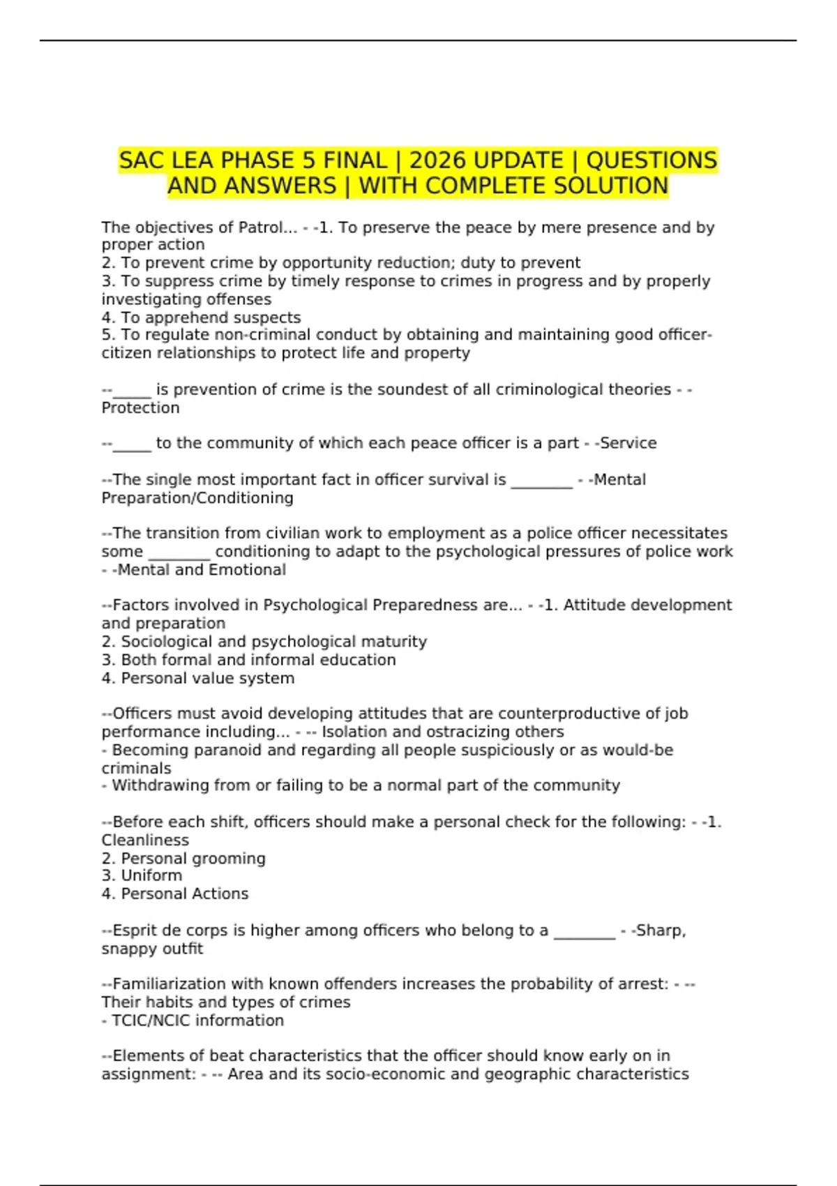 SAC LEA PHASE 5 FINAL | 2026 UPDATE | QUESTIONS