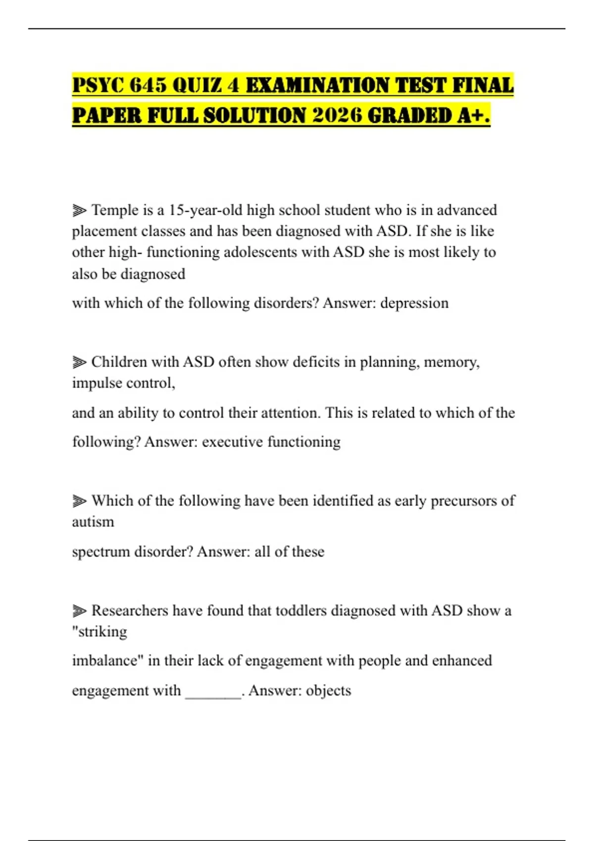 PSYC 645 QUIZ 4 EXAMINATION TEST FINAL PAPER FULL SOLUTION 2026 GRADED A+.