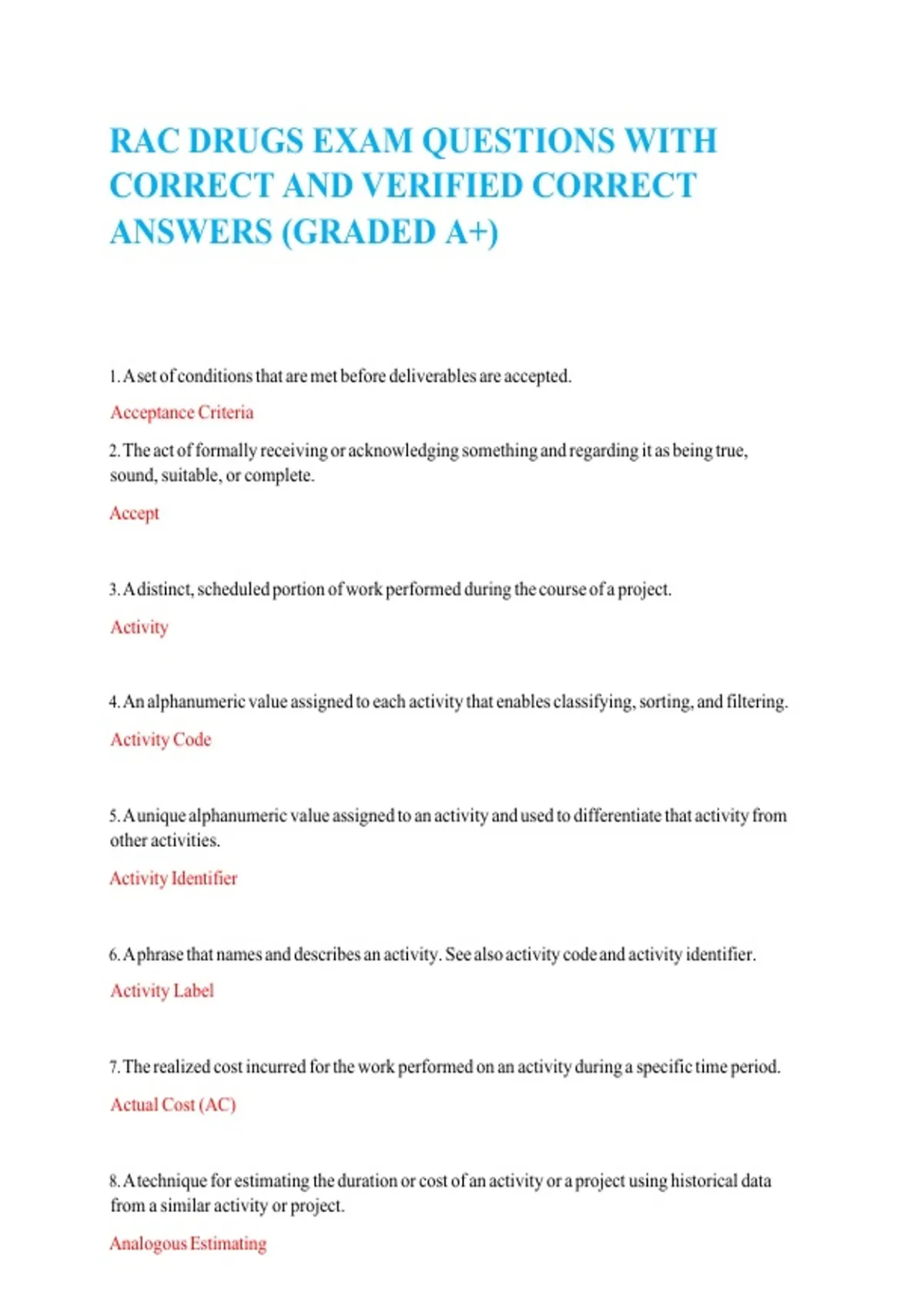RAC DRUGS EXAM QUESTIONS WITH