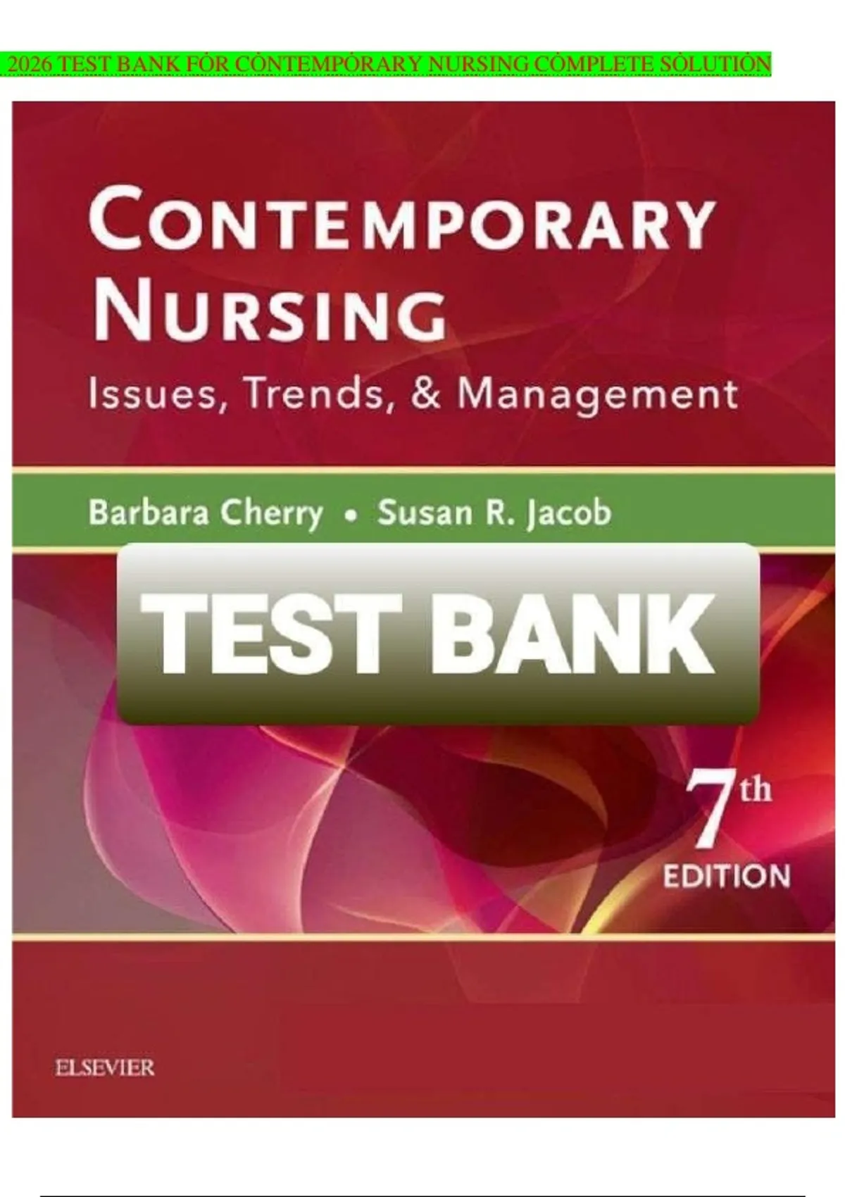 This A+ Test Bank for Contemporary Nursing: Issues, Trends & Management, 7th Edition by Barbara Cherry & Susan R. Jacob (ISBN 9780323390224) is a complete study and exam‑prep resource tailored to nursing coursework covering the evolution of nursing, professional roles, contemporary practice issues, licensure and certification, leadership and management, legal and ethical topics, communication, and health care trends — aligned with the 7th Edition textbook. The test bank includes chapter‑by‑chapter questions and answers designed to reinforce critical thinking and content mastery for assignments, quizzes, and exam preparation. Ideal for NCLEX‑style review, classroom assessment, and nursing program evaluation, this resource enhances understanding of current nursing issues and practice frameworks.
