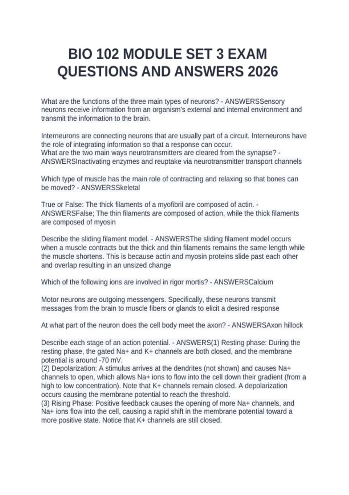 BIO 102 MODULE SET 3 EXAM QUESTIONS AND ANSWERS 2026