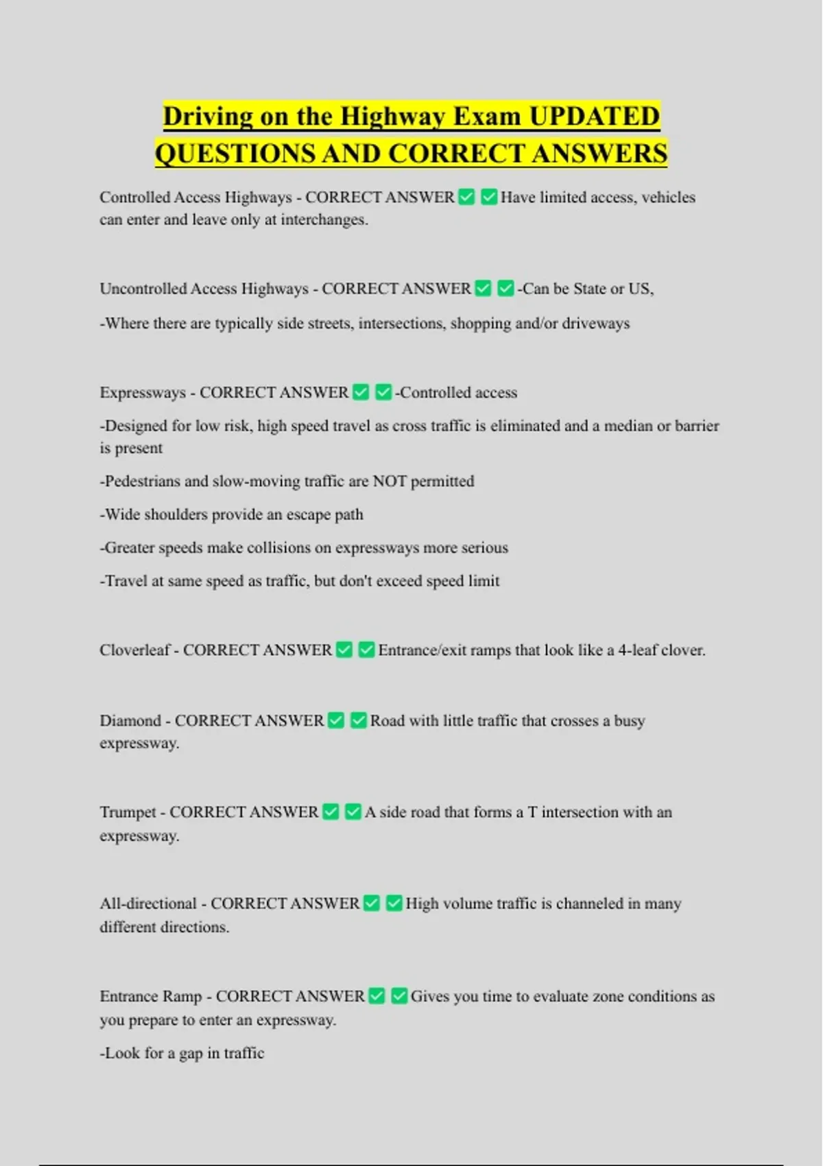 Controlled Access Highways - CORRECT ANSWER Have limited access, vehicles