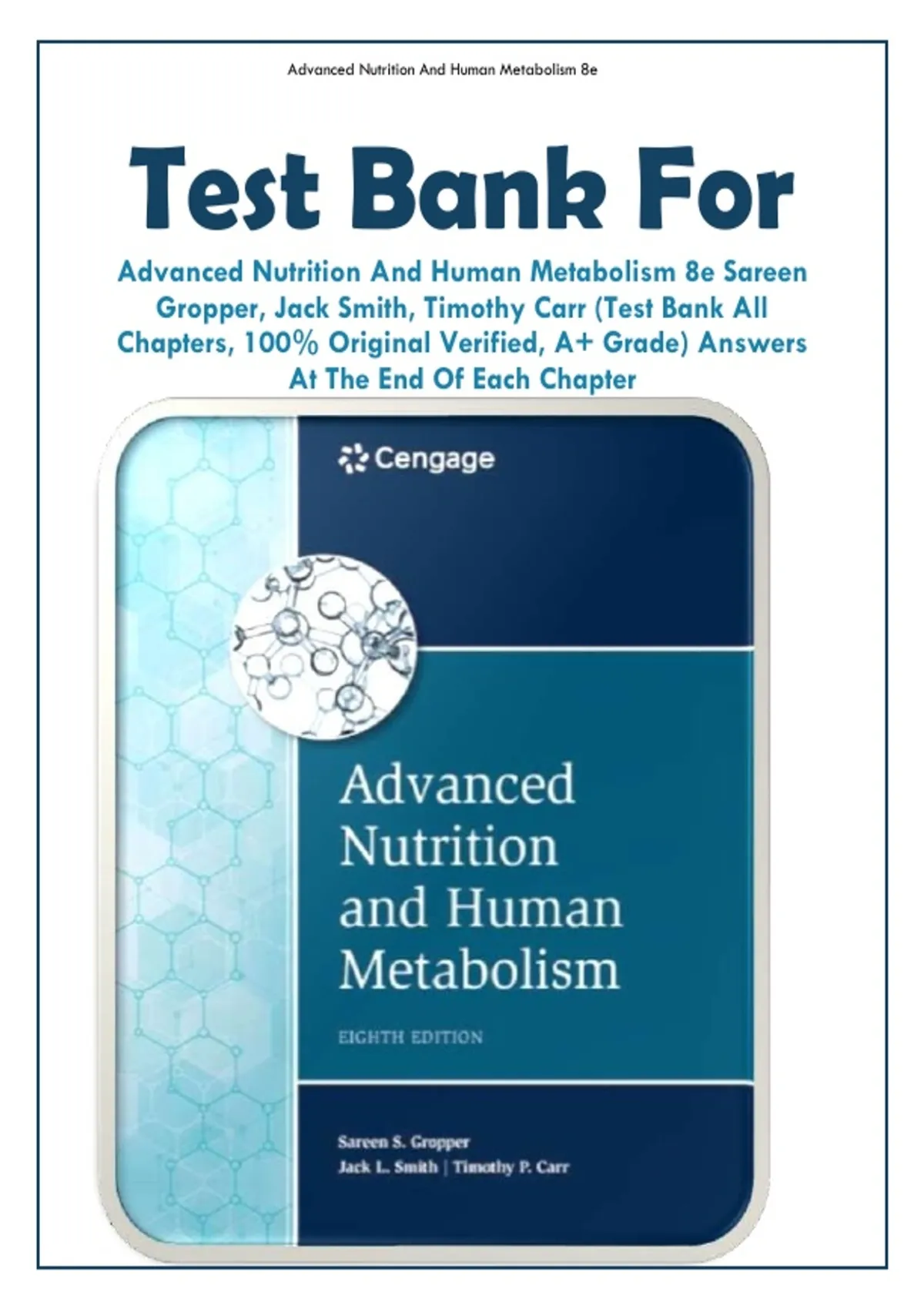 Advanced Nutrition And Human Metabolism 8e Sareen Gropper, Jack Smith, Timothy Carr (Test Bank All
