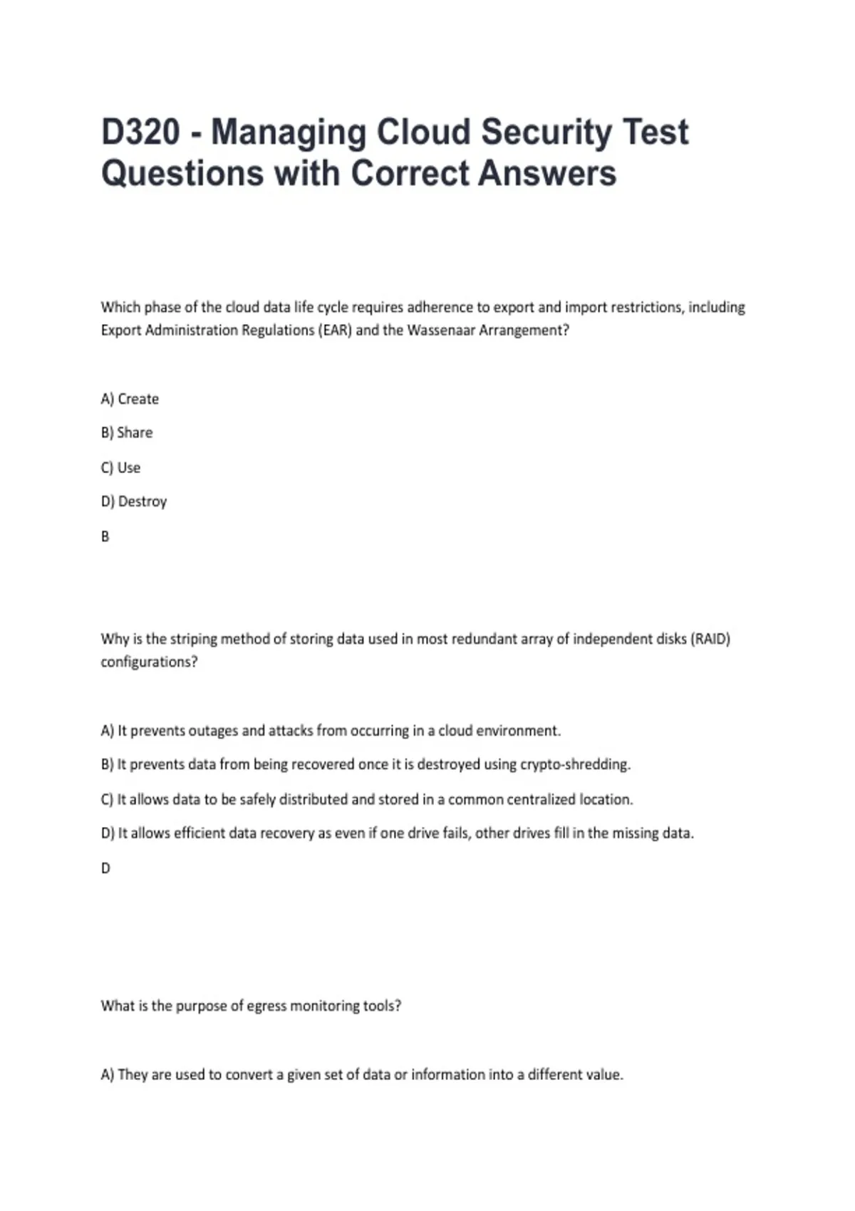Prepare effectively for WGU D320 – Managing Cloud Security with this comprehensive study guide. Includes practice questions and detailed explanations covering cloud security principles, risk management, access control, compliance standards, encryption, and incident response strategies. Designed for WGU students seeking structured exam preparation, concept mastery, and confidence to succeed in D320 assessments.
