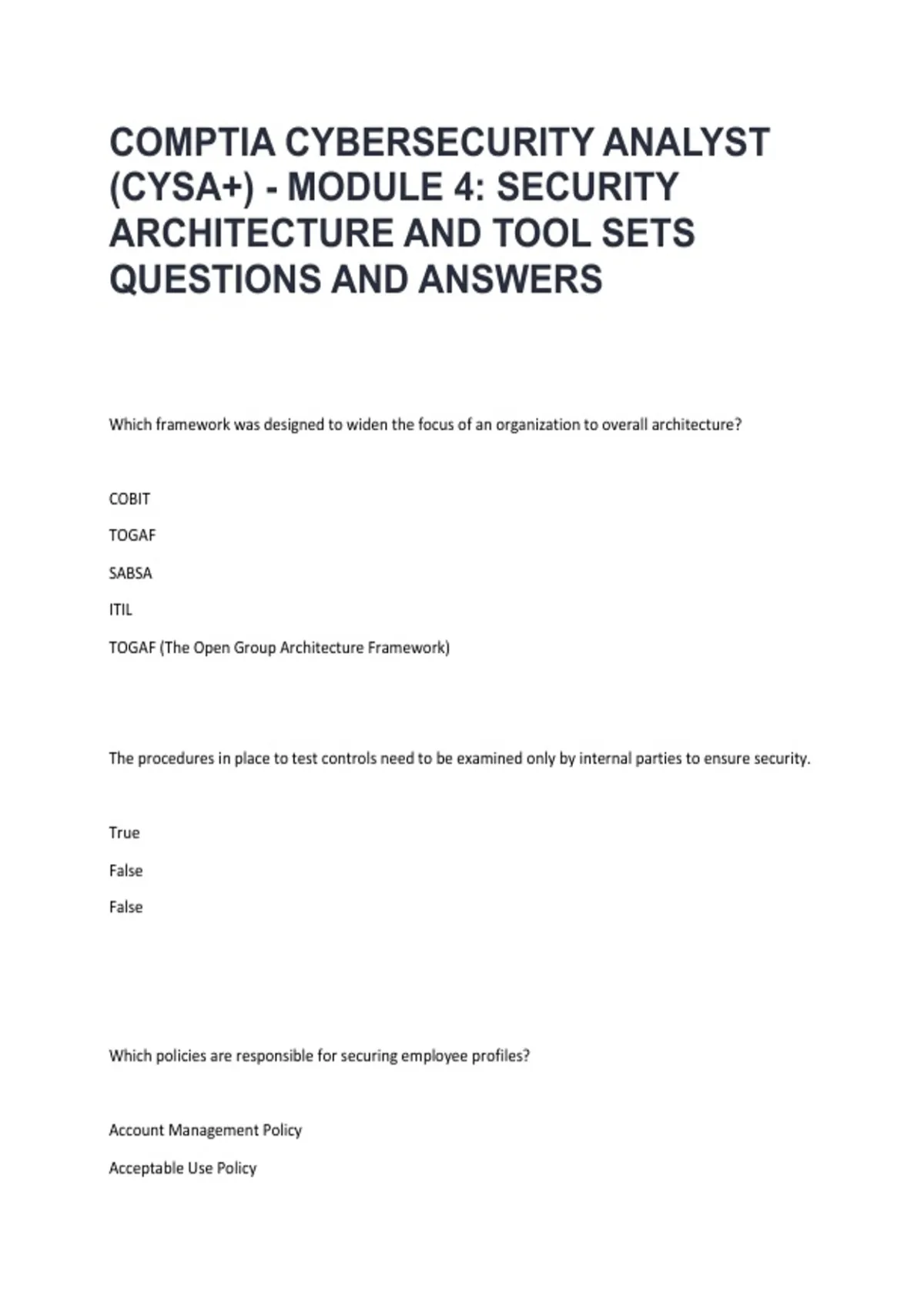 CompTIA CySA+ Module 4 – Security Architecture and Tools | Complete Study Guide & Practice