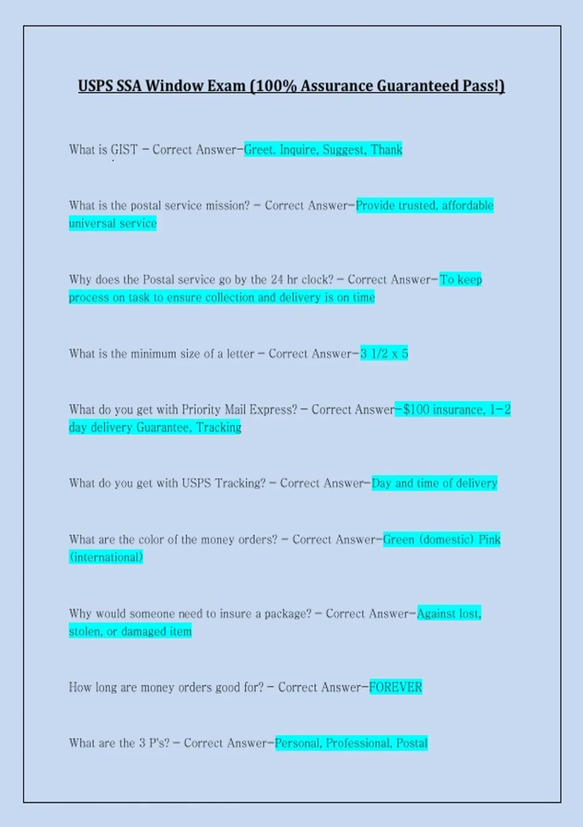 USPS SSA Window Exam (100% Assurance Guaranteed Pass!)