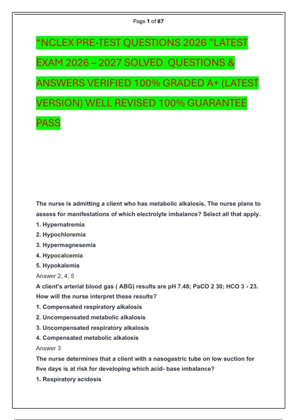 “NCLEX PRE-TEST QUESTIONS 2026 ”LATEST