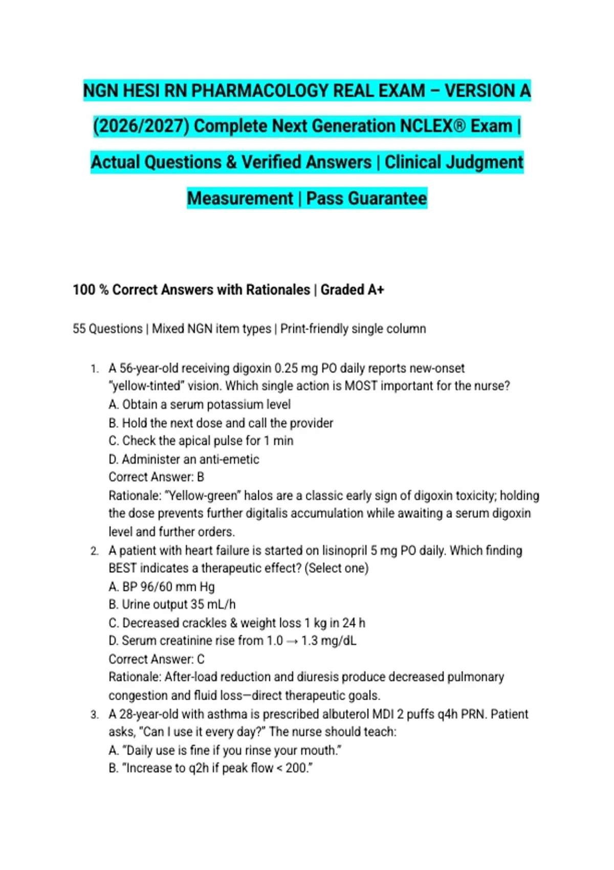 Actual Questions & Verified Answers | Clinical Judgment