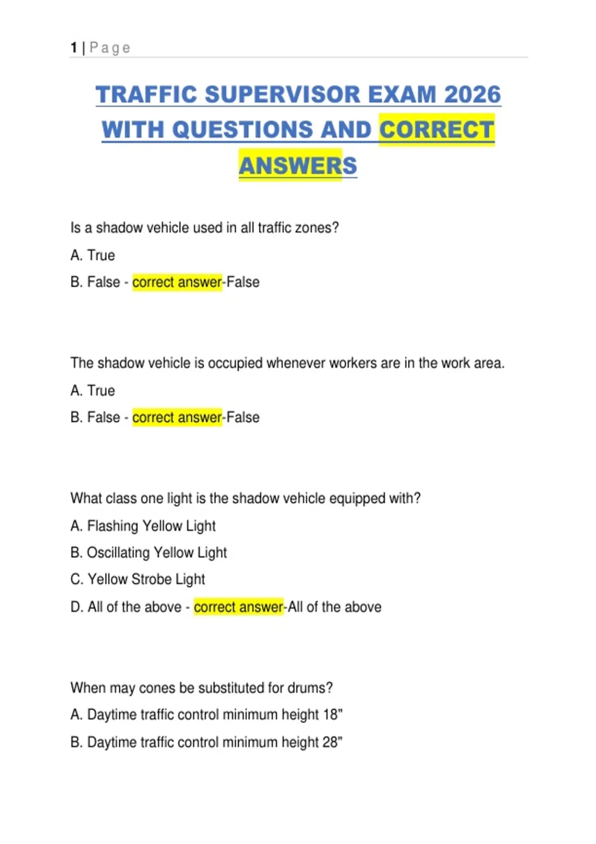 TRAFFIC SUPERVISOR EXAM 2026 WITH QUESTIONS AND CORRECT ANSWERS