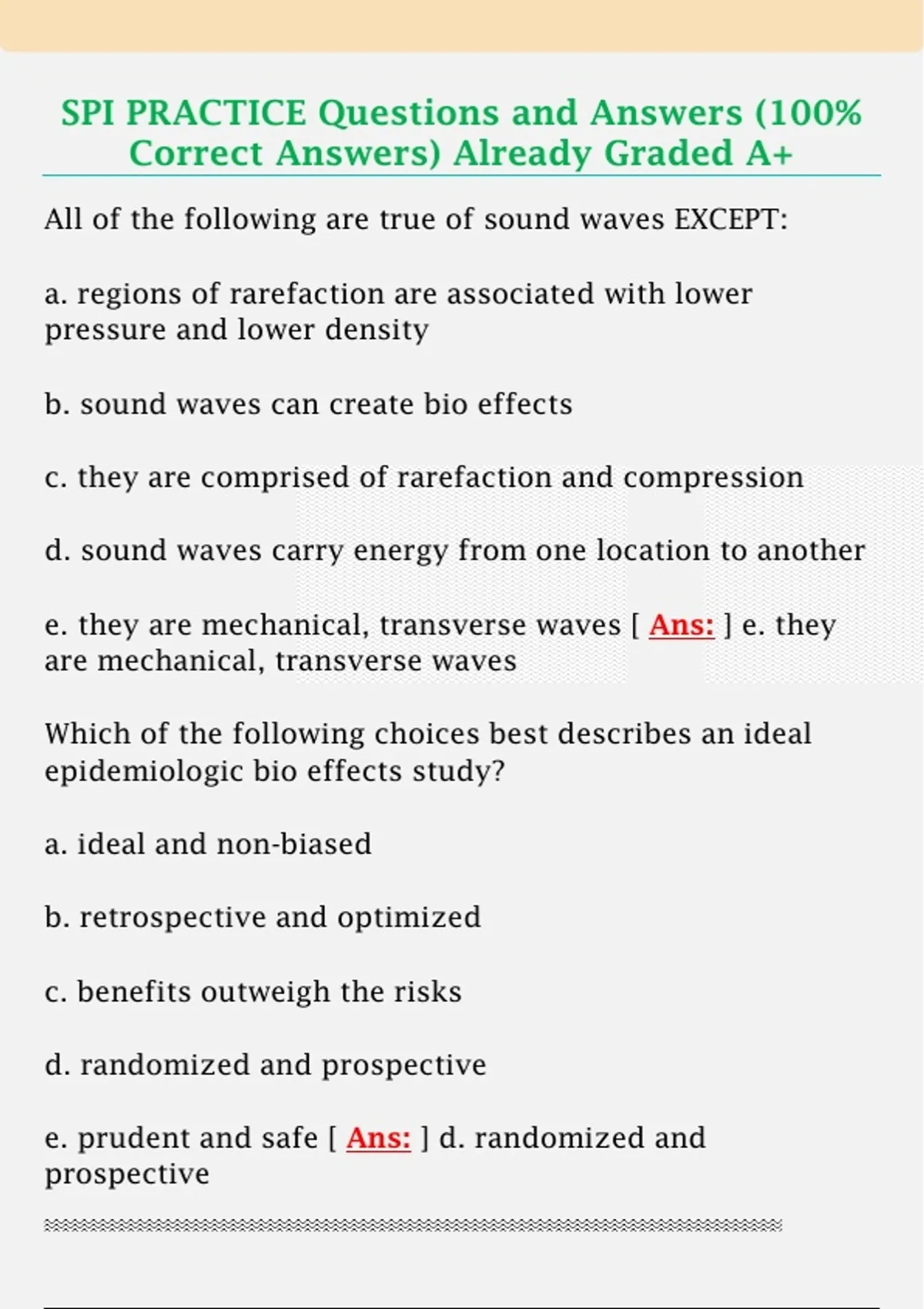 SPI PRACTICE Questions and Answers (100%