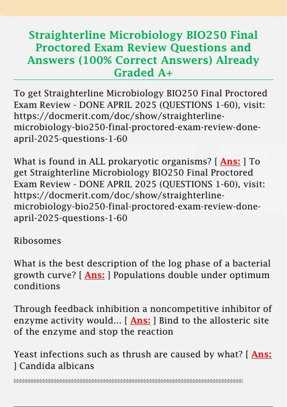 To get Straighterline Microbiology BIO250 Final Proctored
