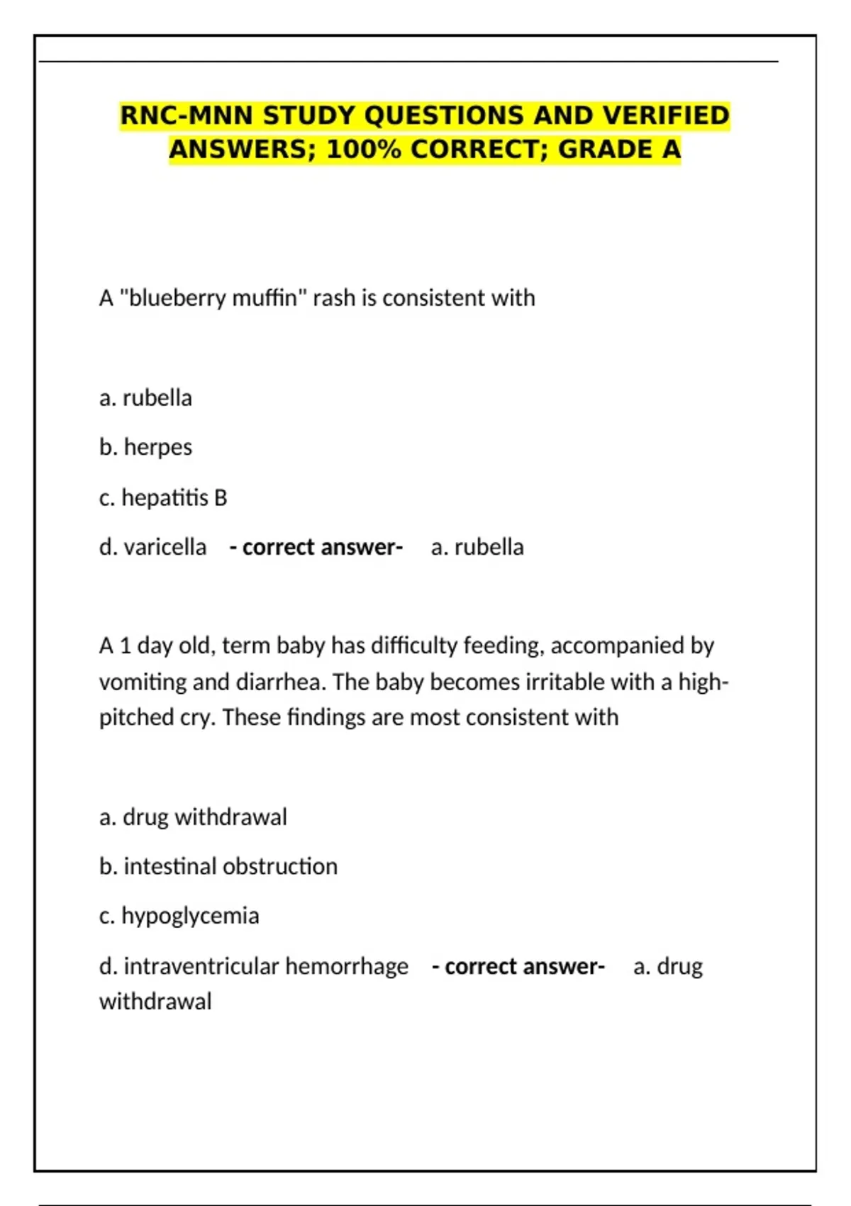 d. varicella - correct answer- a. rubella
