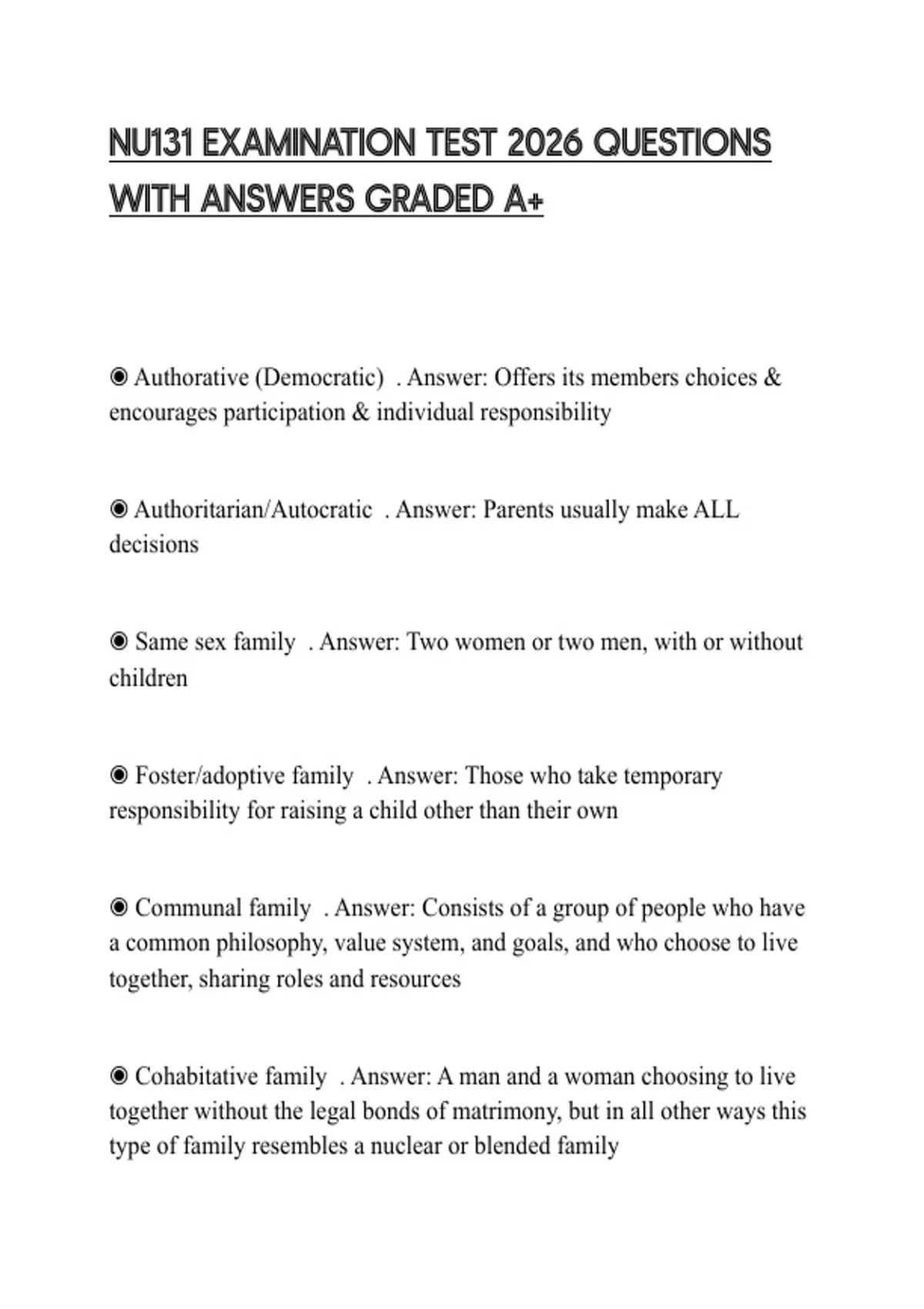NU131 EXAMINATION TEST 2026 QUESTIONS WITH ANSWERS GRADED A+