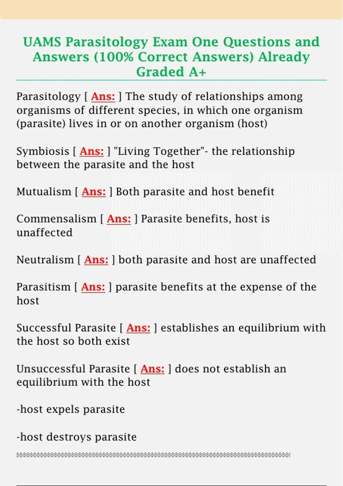 UAMS Parasitology Exam One Questions and Answers (100% Correct Answers) Already Graded A+