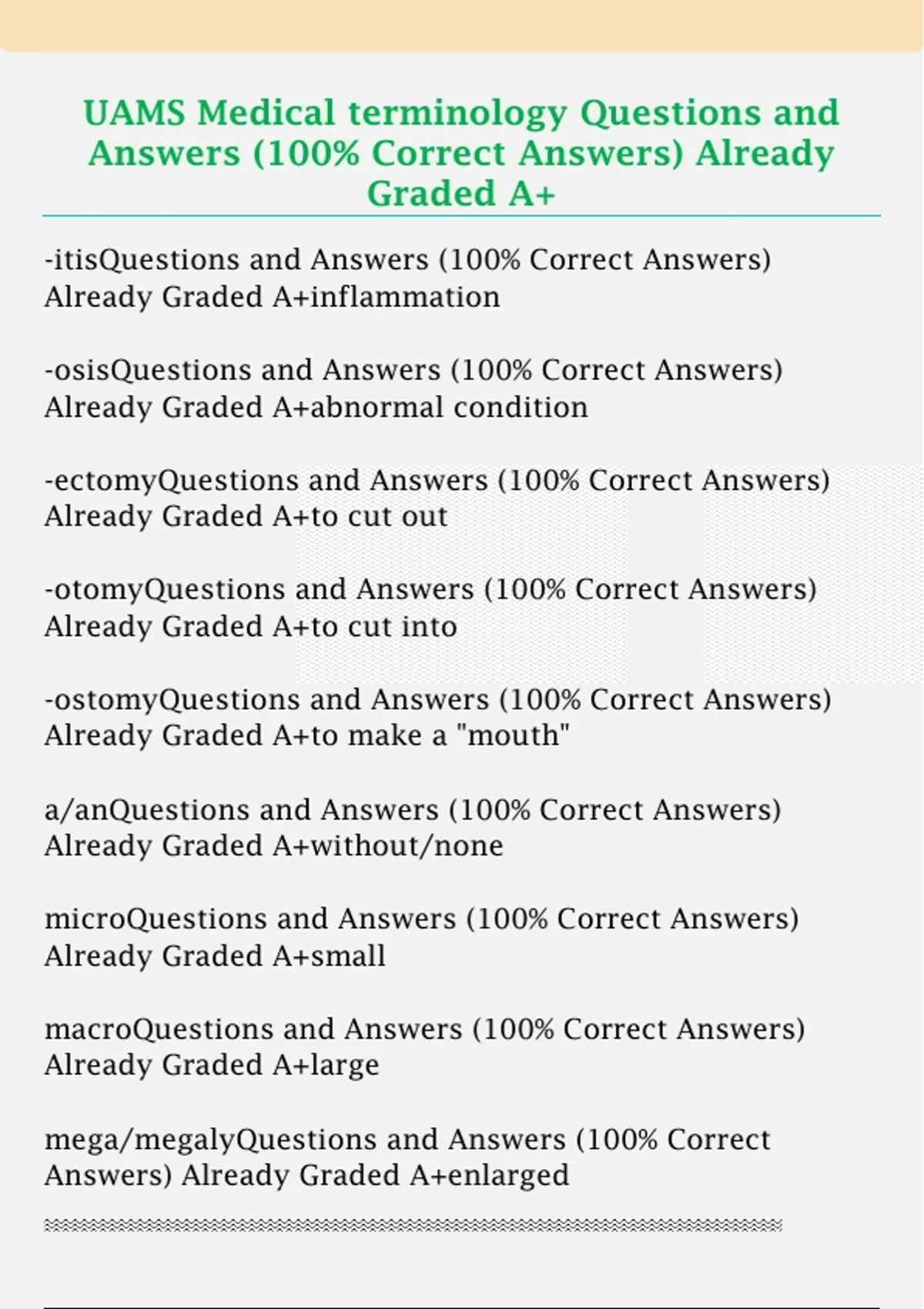 UAMS Medical terminology Questions and Answers (100% Correct Answers) Already Graded A+