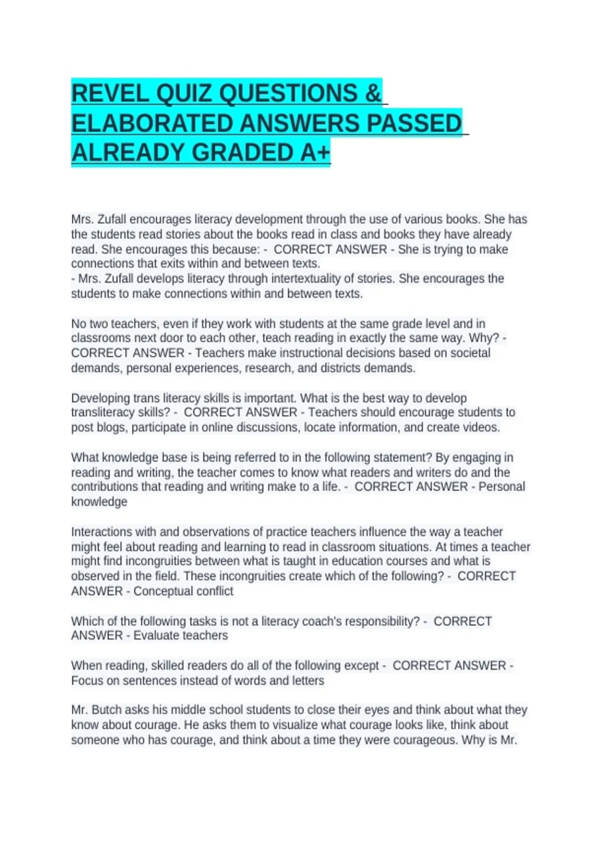 REVEL QUIZ QUESTIONS & ELABORATED ANSWERS PASSED ALREADY GRADED A+
