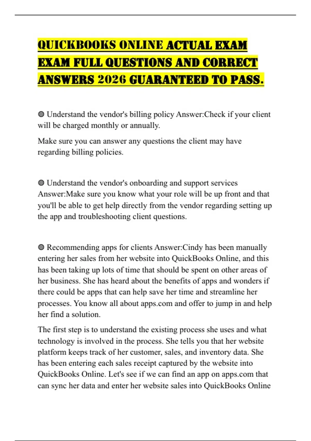 QUICKBOOKS ONLINE ACTUAL EXAM EXAM FULL QUESTIONS AND CORRECT ANSWERS 2026 GUARANTEED TO PASS