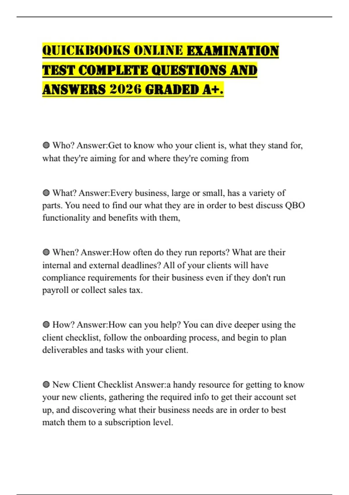 QUICKBOOKS ONLINE EXAMINATION TEST COMPLETE QUESTIONS AND ANSWERS 2026 GRADED A+.