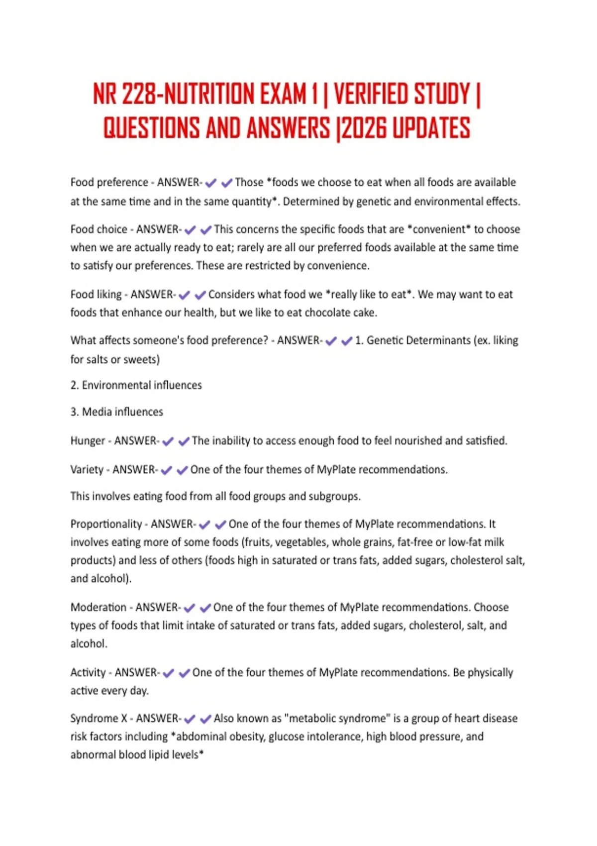 NR 228-NUTRITION EXAM 1 | VERIFIED STUDY | QUESTIONS AND ANSWERS |2026 UPDATES