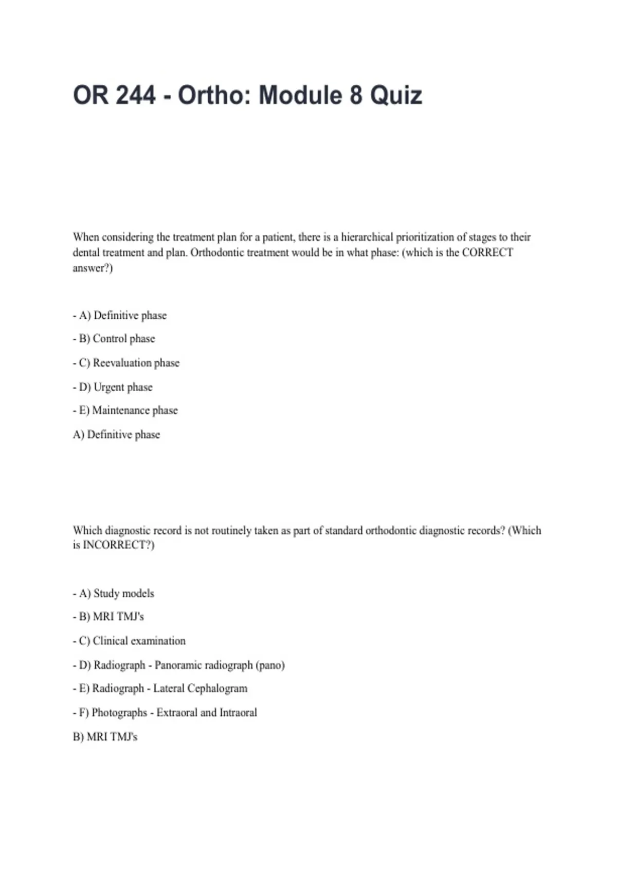 ,Page 2 of 86 OR 244 Ortho Module 8 Quiz - Updated with Solution | All Covered OR 244 Ortho Module 8 Quiz.pdf