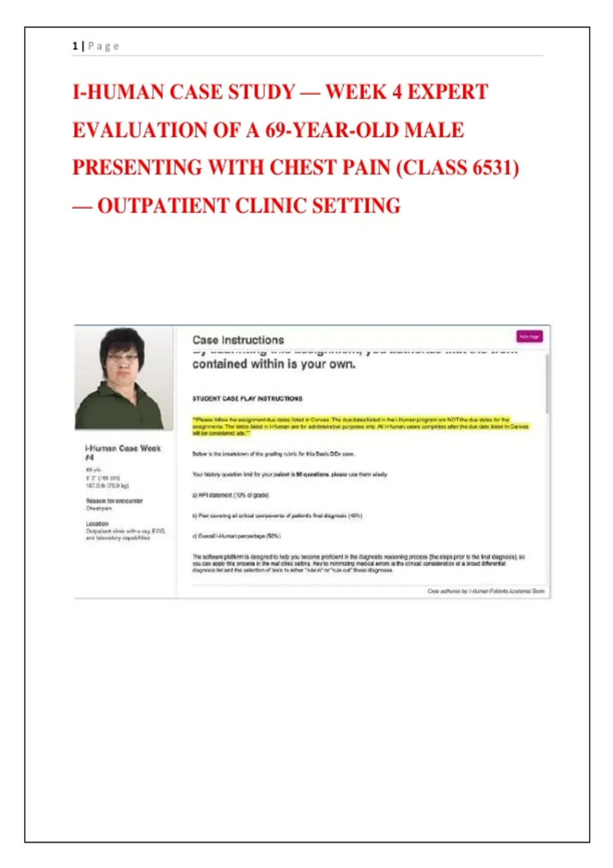 I-HUMAN CASE STUDY — WEEK 4 EXPERT EVALUATION OF A 69-YEAR-OLD MALE PRESENTING WITH CHEST PAIN (CLASS 6531) — OUTPATIENT CLINIC SETTING A+ LATEST