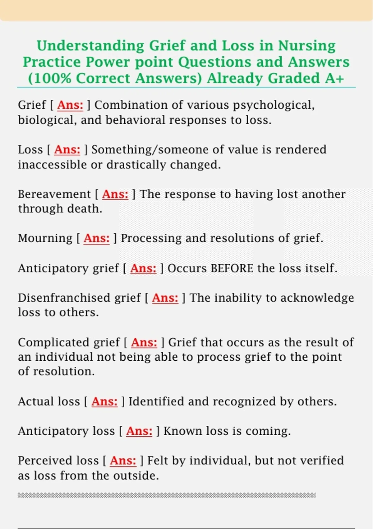 Anticipatory grief [ Ans: ] Occurs BEFORE the loss itself.