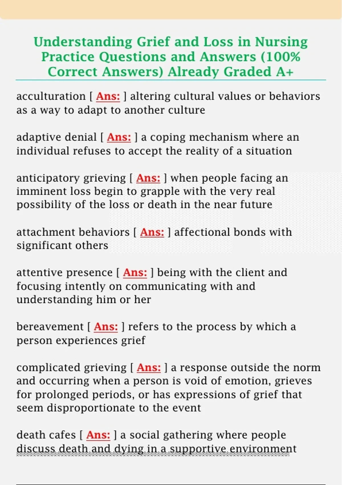 Understanding Grief and Loss in Nursing Practice Questions and Answers (100% Correct Answers) Already Graded A+