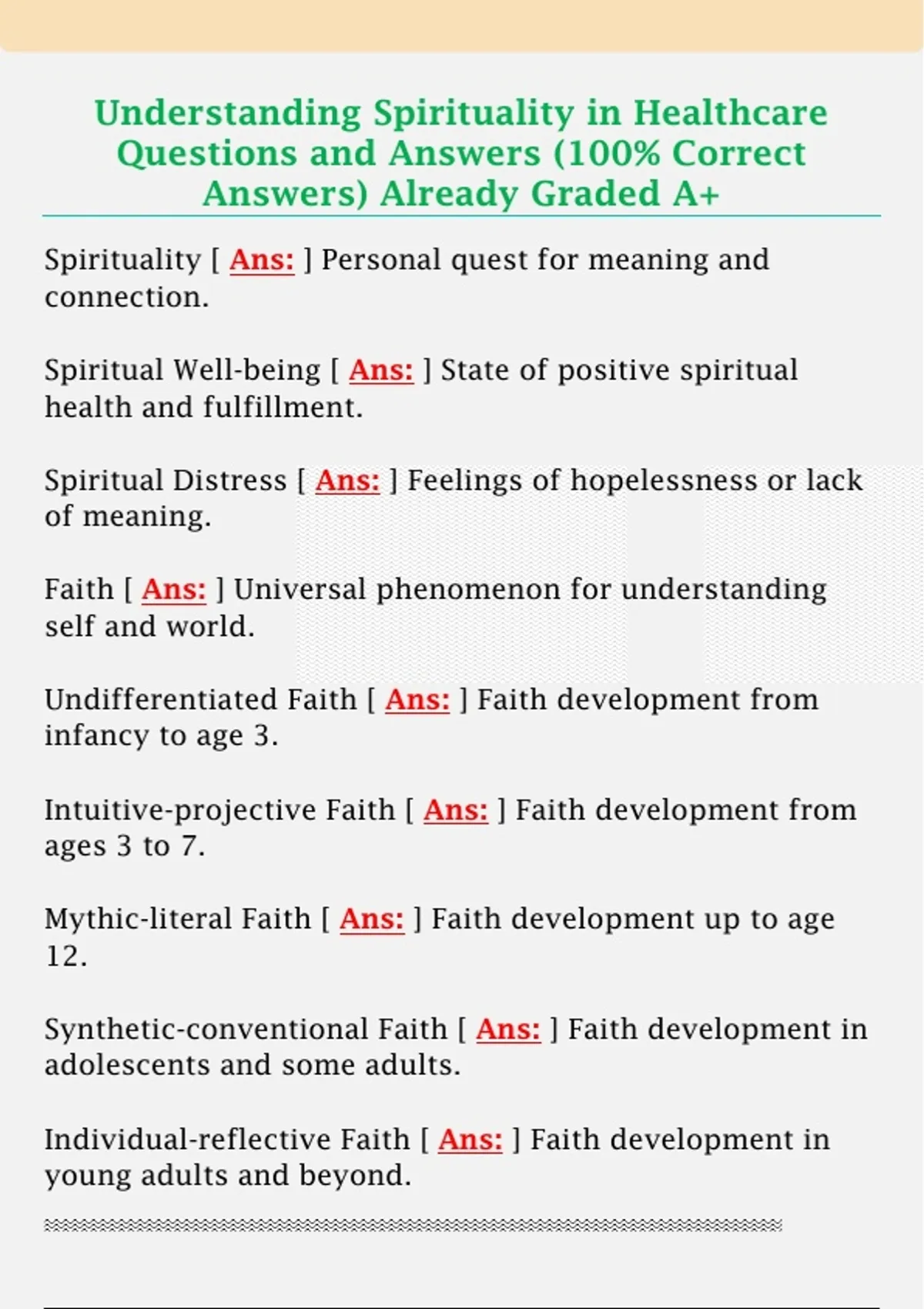 Understanding Spirituality in Healthcare Questions and Answers (100% Correct Answers) Already Graded A+