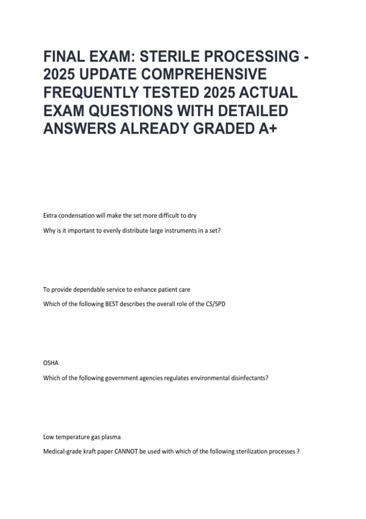 FINAL EXAM: STERILE PROCESSING -