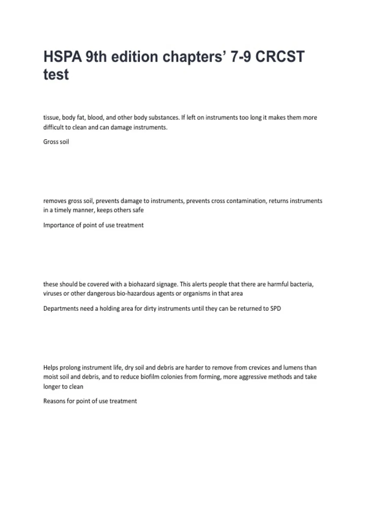 HSPA 9th edition chapters’ 7-9 CRCST